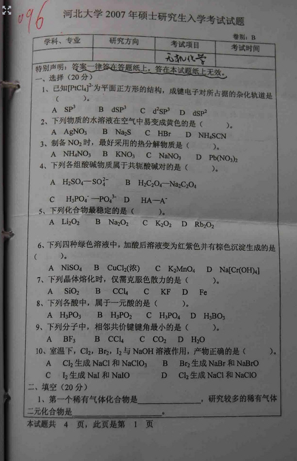 当前位置:考研云分享 专业课真题 2007年河北大学无机化学考研真题 附件 文件名: 2007年河北大学无机化学考研真题.pdf 文件类型: pdf 前往下载 附件购买 售价:98 积分 开通会员或更高级的会员可免费下载该文件 您还未登录,请登录后查看资料 登录 河北大学无机化学 河北大学 无机化学 免责声明:本站所有的内容均来源于互联网采集或网友投稿提供,不能保证内容的真实性、完整性,仅供个人研究、交流学习使用,不涉及任何商业盈利目的。如果资料有误与官方发布不一致,请与官方最新发布为准,请联系本站管理员予以更改,如果涉及版权等问题,请联系本站管理员予以删除。 维权指引 | 权限说明 | 下载说明 | 内容投诉考研云分享 » 2007年河北大学无机化学考研真题