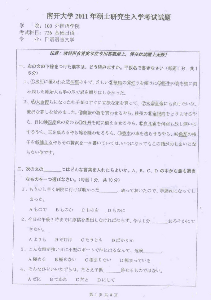 当前位置:考研云分享 专业课真题 2011年南开大学基础日语考研真题 积分抵扣 售价:98 积分 开通会员或更高级的会员可免费查看该内容 您还未登录,请登录后查看资料 登录 南开大学基础日语 南开大学 基础日语 免责声明:本站所有的内容均来源于互联网采集或网友投稿提供,不能保证内容的真实性、完整性,仅供个人研究、交流学习使用,不涉及任何商业盈利目的。如果资料有误与官方发布不一致,请与官方最新发布为准,请联系本站管理员予以更改,如果涉及版权等问题,请联系本站管理员予以删除。 维权指引 | 权限说明 | 下载说明 | 内容投诉考研云分享 » 2011年南开大学基础日语考研真题