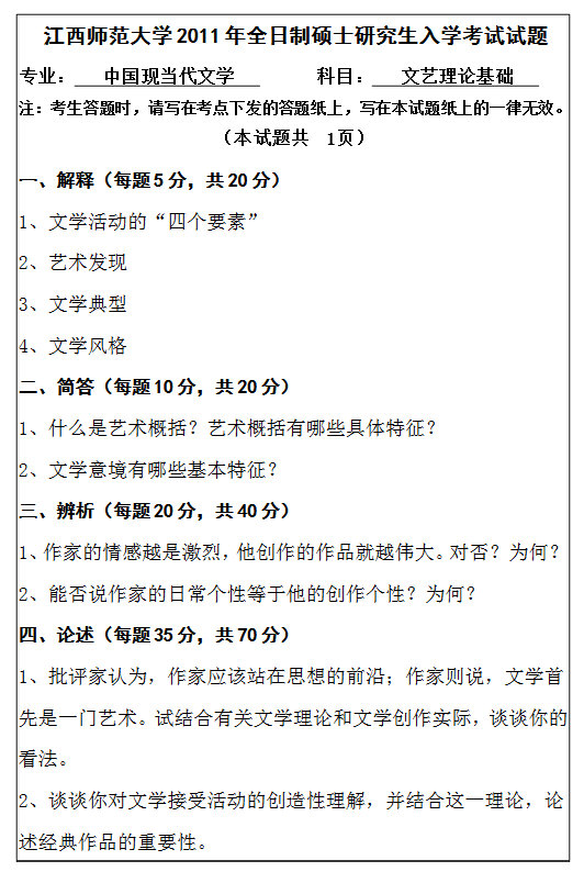 当前位置:考研云分享 专业课真题 2011年江西师范大学715文艺理论基础考研真题 江西师范大学文艺理论基础 江西师范大学 文艺理论基础 免责声明:本站所有的内容均来源于互联网采集或网友投稿提供,不能保证内容的真实性、完整性,仅供个人研究、交流学习使用,不涉及任何商业盈利目的。如果资料有误与官方发布不一致,请与官方最新发布为准,请联系本站管理员予以更改,如果涉及版权等问题,请联系本站管理员予以删除。 维权指引 | 权限说明 | 下载说明 | 内容投诉考研云分享 » 2011年江西师范大学715文艺理论基础考研真题