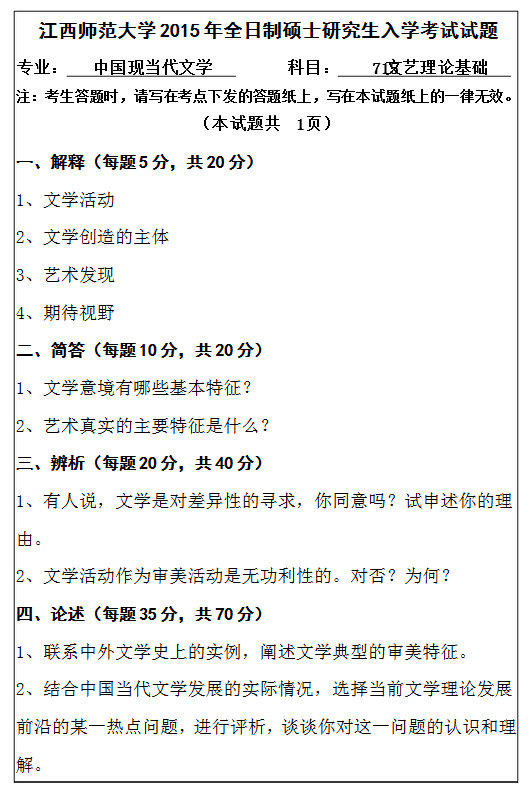 当前位置:考研云分享 专业课真题 2015年江西师范大学715文艺理论基础考研真题 江西师范大学文艺理论基础 江西师范大学 文艺理论基础 免责声明:本站所有的内容均来源于互联网采集或网友投稿提供,不能保证内容的真实性、完整性,仅供个人研究、交流学习使用,不涉及任何商业盈利目的。如果资料有误与官方发布不一致,请与官方最新发布为准,请联系本站管理员予以更改,如果涉及版权等问题,请联系本站管理员予以删除。 维权指引 | 权限说明 | 下载说明 | 内容投诉考研云分享 » 2015年江西师范大学715文艺理论基础考研真题