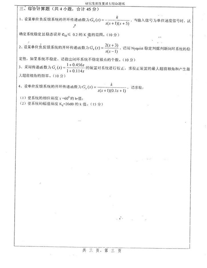 当前位置:考研云分享 复试真题 2011年湖南大学F013控制工程考研复试真题 湖南大学 免责声明:本站所有的内容均来源于互联网采集或网友投稿提供,不能保证内容的真实性、完整性,仅供个人研究、交流学习使用,不涉及任何商业盈利目的。如果资料有误与官方发布不一致,请与官方最新发布为准,请联系本站管理员予以更改,如果涉及版权等问题,请联系本站管理员予以删除。 维权指引 | 权限说明 | 下载说明 | 内容投诉考研云分享 » 2011年湖南大学F013控制工程考研复试真题
