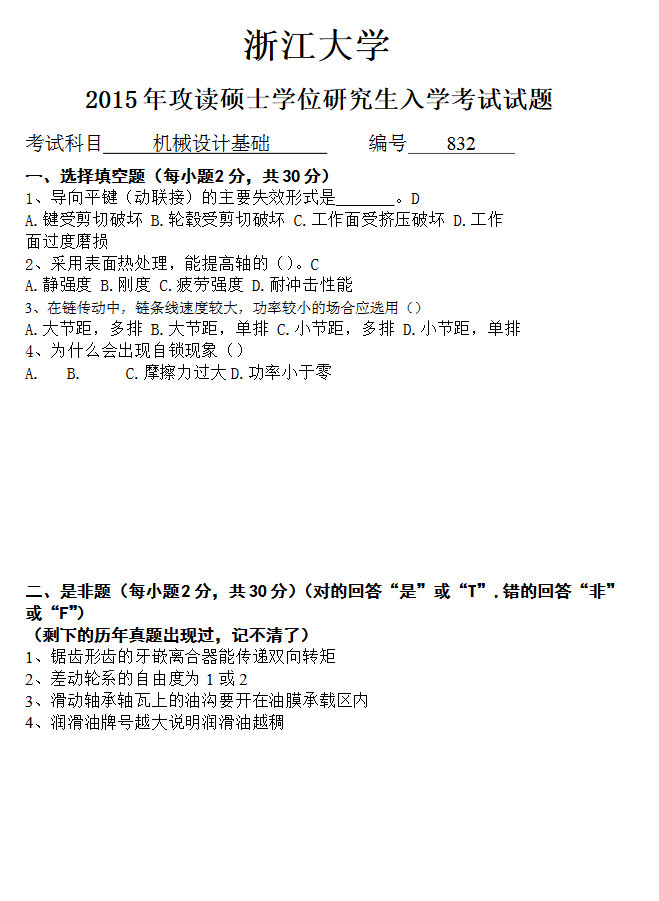 当前位置:考研云分享 专业课真题 2015年浙江大学832机械设计基础考研真题 版本二(附件三) 附件1 文件名: 2015年浙江大学832机械设计基础考研真题.docx 大小: 462.40KB 文件类型: .docx 前往下载 附件2 文件名: 2015年浙江大学832机械设计基础考研真题 文件类型: pdf 前往下载 附件3 文件名: 2015年浙江大学机械设计基础考研真题.docx 文件类型: .docx 前往下载 附件购买 售价:98 积分 开通会员或更高级的会员可免费下载该文件 您还未登录,请登录后查看资料 登录 浙江大学机械设计基础 浙江大学 机械设计基础 免责声明:本站所有的内容均来源于互联网采集或网友投稿提供,不能保证内容的真实性、完整性,仅供个人研究、交流学习使用,不涉及任何商业盈利目的。如果资料有误与官方发布不一致,请与官方最新发布为准,请联系本站管理员予以更改,如果涉及版权等问题,请联系本站管理员予以删除。 维权指引 | 权限说明 | 下载说明 | 内容投诉考研云分享 » 2015年浙江大学832机械设计基础考研真题