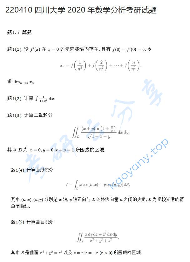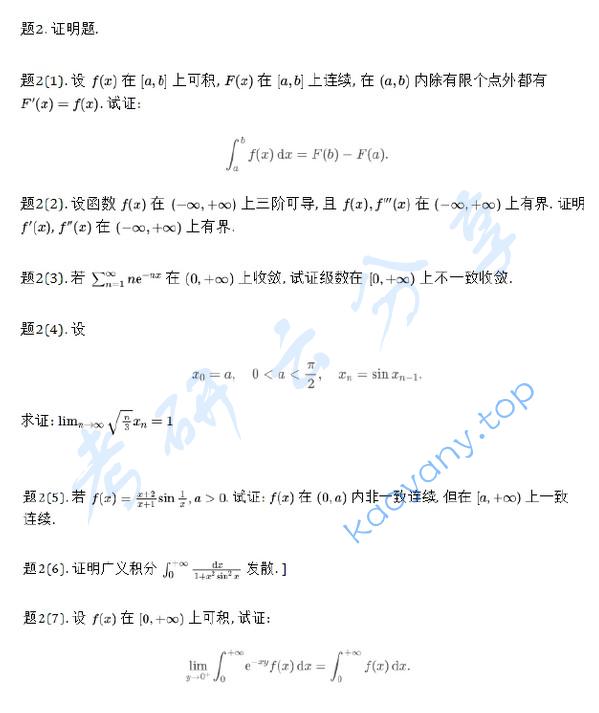 当前位置:考研云分享 专业课真题 2020年四川大学652数学分析考研真题 积分抵扣 隐藏内容 内容投诉 四川大学数学分析 四川大学 数学分析 免责声明:本站所有的内容均来源于互联网采集或网友投稿提供,不能保证内容的真实性、完整性,仅供个人研究、交流学习使用,不涉及任何商业盈利目的。如果资料有误与官方发布不一致,请与官方最新发布为准,请联系本站管理员予以更改,如果涉及版权等问题,请联系本站管理员予以删除。 维权指引 | 权限说明 | 下载说明 | 内容投诉考研云分享 » 2020年四川大学652数学分析考研真题