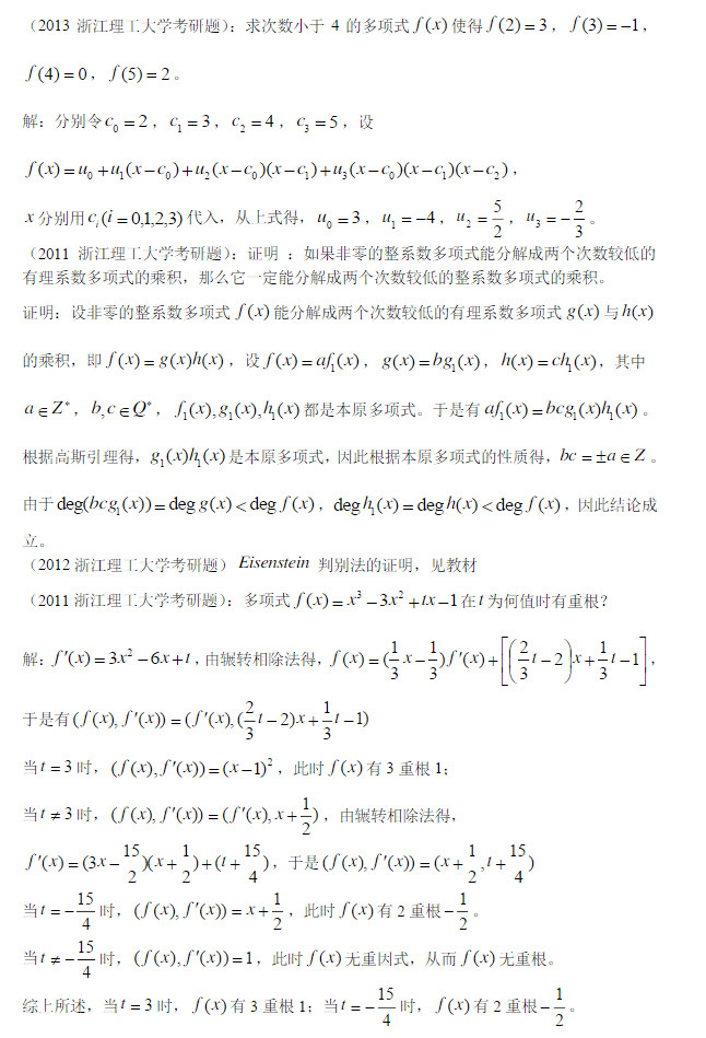考研云分享 专业课真题 2007-2014年浙江理工大学高等代数(多项式部分)考研真题答案