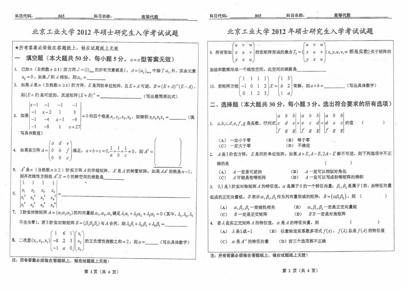 当前位置:考研云分享 专业课真题 2012年北京工业大学865高等代数考研真题 附件 文件名: 2012年北京工业大学865高等代数考研真题.docx 文件类型: docx 前往下载 附件购买 售价:98 积分 开通会员或更高级的会员可免费下载该文件 您还未登录,请登录后查看资料 登录 北京工业大学高等代数 北京工业大学 高等代数 免责声明:本站所有的内容均来源于互联网采集或网友投稿提供,不能保证内容的真实性、完整性,仅供个人研究、交流学习使用,不涉及任何商业盈利目的。如果资料有误与官方发布不一致,请与官方最新发布为准,请联系本站管理员予以更改,如果涉及版权等问题,请联系本站管理员予以删除。 维权指引 | 权限说明 | 下载说明 | 内容投诉考研云分享 » 2012年北京工业大学865高等代数考研真题