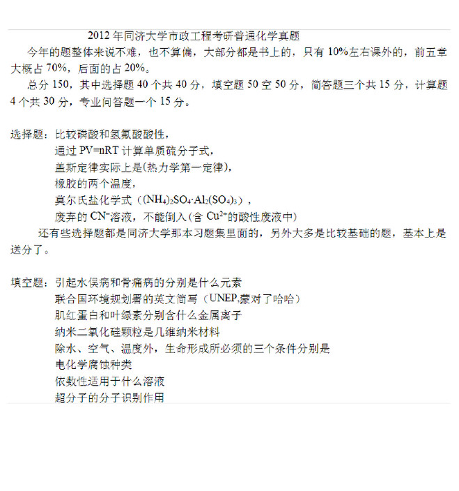 当前位置:考研云分享 专业课真题 2012年同济大学普通化学考研真题 附件 文件名: 2012年同济大学普通化学考研真题.docx 大小: 361.07KB 文件类型: .docx 前往下载 附件购买 售价:98 积分 开通会员或更高级的会员可免费下载该文件 您还未登录,请登录后查看资料 登录 同济大学普通化学 同济大学 普通化学 免责声明:本站所有的内容均来源于互联网采集或网友投稿提供,不能保证内容的真实性、完整性,仅供个人研究、交流学习使用,不涉及任何商业盈利目的。如果资料有误与官方发布不一致,请与官方最新发布为准,请联系本站管理员予以更改,如果涉及版权等问题,请联系本站管理员予以删除。 维权指引 | 权限说明 | 下载说明 | 内容投诉考研云分享 » 2012年同济大学普通化学考研真题