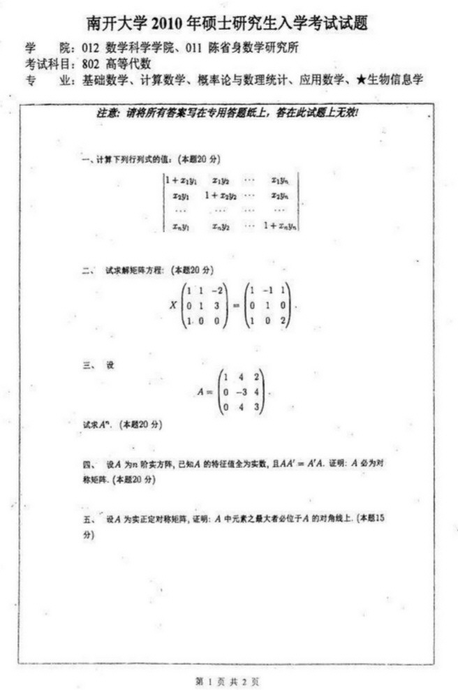 当前位置:考研云分享 专业课真题 2010年南开大学802高等代数考研真题 积分抵扣 售价:98 积分 开通会员或更高级的会员可免费查看该内容 您还未登录,请登录后查看资料 登录 南开大学高等代数 南开大学 高等代数 免责声明:本站所有的内容均来源于互联网采集或网友投稿提供,不能保证内容的真实性、完整性,仅供个人研究、交流学习使用,不涉及任何商业盈利目的。如果资料有误与官方发布不一致,请与官方最新发布为准,请联系本站管理员予以更改,如果涉及版权等问题,请联系本站管理员予以删除。 维权指引 | 权限说明 | 下载说明 | 内容投诉考研云分享 » 2010年南开大学802高等代数考研真题