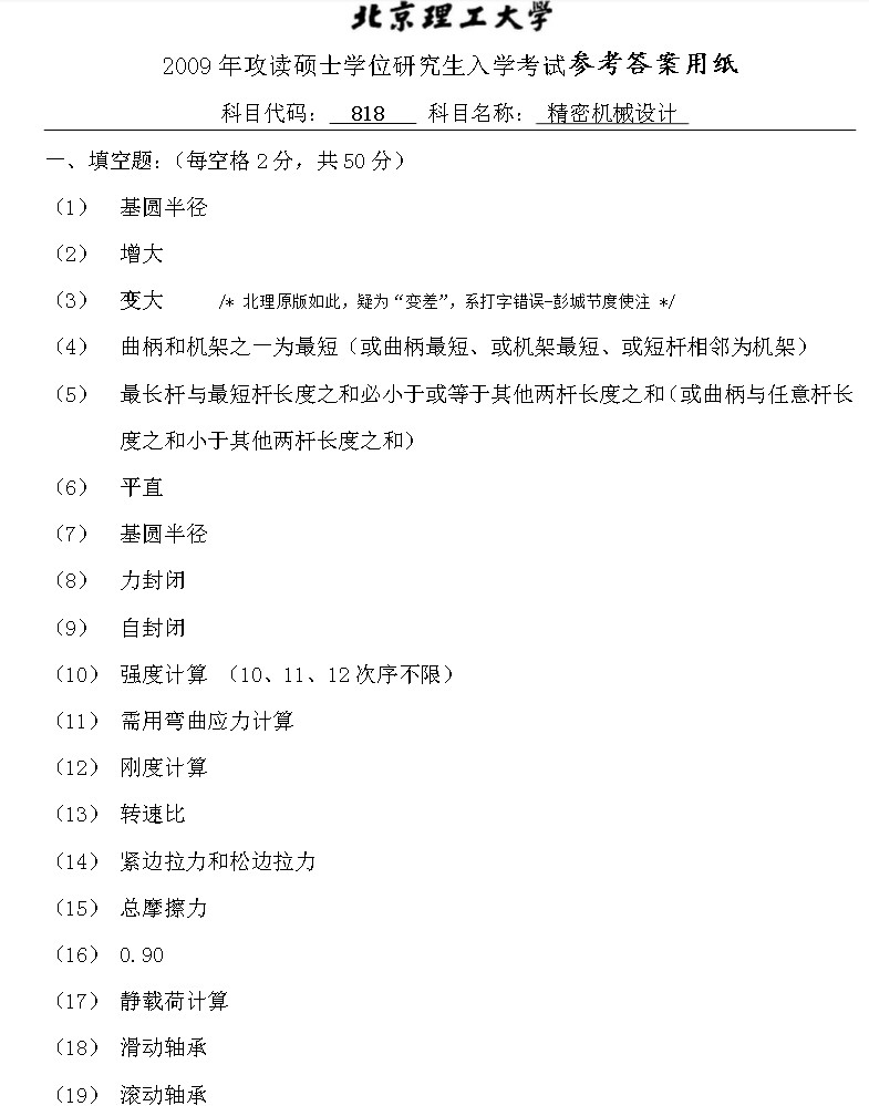 当前位置:考研云分享 专业课真题 2009年北京理工大学818精密机械设计A卷考研真题答案 附件 文件名: 2009年北京理工大学818精密机械设计A卷考研真题答案.docx 文件类型: docx 前往下载 附件购买 售价:98 积分 开通会员或更高级的会员可免费下载该文件 您还未登录,请登录后查看资料 登录 北京理工大学精密机械设计 北京理工大学 精密机械设计 免责声明:本站所有的内容均来源于互联网采集或网友投稿提供,不能保证内容的真实性、完整性,仅供个人研究、交流学习使用,不涉及任何商业盈利目的。如果资料有误与官方发布不一致,请与官方最新发布为准,请联系本站管理员予以更改,如果涉及版权等问题,请联系本站管理员予以删除。 维权指引 | 权限说明 | 下载说明 | 内容投诉考研云分享 » 2009年北京理工大学818精密机械设计A卷考研真题答案