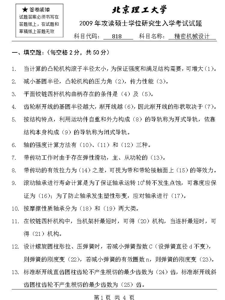 当前位置:考研云分享 专业课真题 2009年北京理工大学818精密机械设计A卷考研真题 附件 文件名: 2009年北京理工大学818精密机械设计A卷考研真题.docx 文件类型: docx 前往下载 附件购买 售价:98 积分 开通会员或更高级的会员可免费下载该文件 您还未登录,请登录后查看资料 登录 北京理工大学精密机械设计 北京理工大学 精密机械设计 免责声明:本站所有的内容均来源于互联网采集或网友投稿提供,不能保证内容的真实性、完整性,仅供个人研究、交流学习使用,不涉及任何商业盈利目的。如果资料有误与官方发布不一致,请与官方最新发布为准,请联系本站管理员予以更改,如果涉及版权等问题,请联系本站管理员予以删除。 维权指引 | 权限说明 | 下载说明 | 内容投诉考研云分享 » 2009年北京理工大学818精密机械设计A卷考研真题