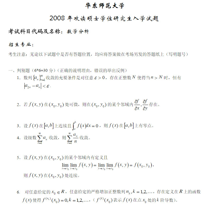 当前位置:考研云分享 专业课真题 2008年华东师范大学626数学分析考研真题 附件 文件名: 2008年华东师范大学626数学分析考研真题.docx 文件类型: docx 前往下载 附件购买 售价:98 积分 开通会员或更高级的会员可免费下载该文件 您还未登录,请登录后查看资料 登录 华东师范大学数学分析 华东师范大学 数学分析 免责声明:本站所有的内容均来源于互联网采集或网友投稿提供,不能保证内容的真实性、完整性,仅供个人研究、交流学习使用,不涉及任何商业盈利目的。如果资料有误与官方发布不一致,请与官方最新发布为准,请联系本站管理员予以更改,如果涉及版权等问题,请联系本站管理员予以删除。 维权指引 | 权限说明 | 下载说明 | 内容投诉考研云分享 » 2008年华东师范大学626数学分析考研真题