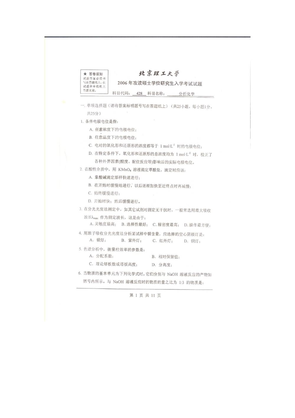 当前位置:考研云分享 专业课真题 2006年北京理工大学428分析化学考研真题 附件 文件名: 2006年北京理工大学428分析化学考研真题.docx 文件类型: docx 前往下载 附件购买 售价:98 积分 开通会员或更高级的会员可免费下载该文件 您还未登录,请登录后查看资料 登录 北京理工大学分析化学 北京理工大学 分析化学 免责声明:本站所有的内容均来源于互联网采集或网友投稿提供,不能保证内容的真实性、完整性,仅供个人研究、交流学习使用,不涉及任何商业盈利目的。如果资料有误与官方发布不一致,请与官方最新发布为准,请联系本站管理员予以更改,如果涉及版权等问题,请联系本站管理员予以删除。 维权指引 | 权限说明 | 下载说明 | 内容投诉考研云分享 » 2006年北京理工大学428分析化学考研真题