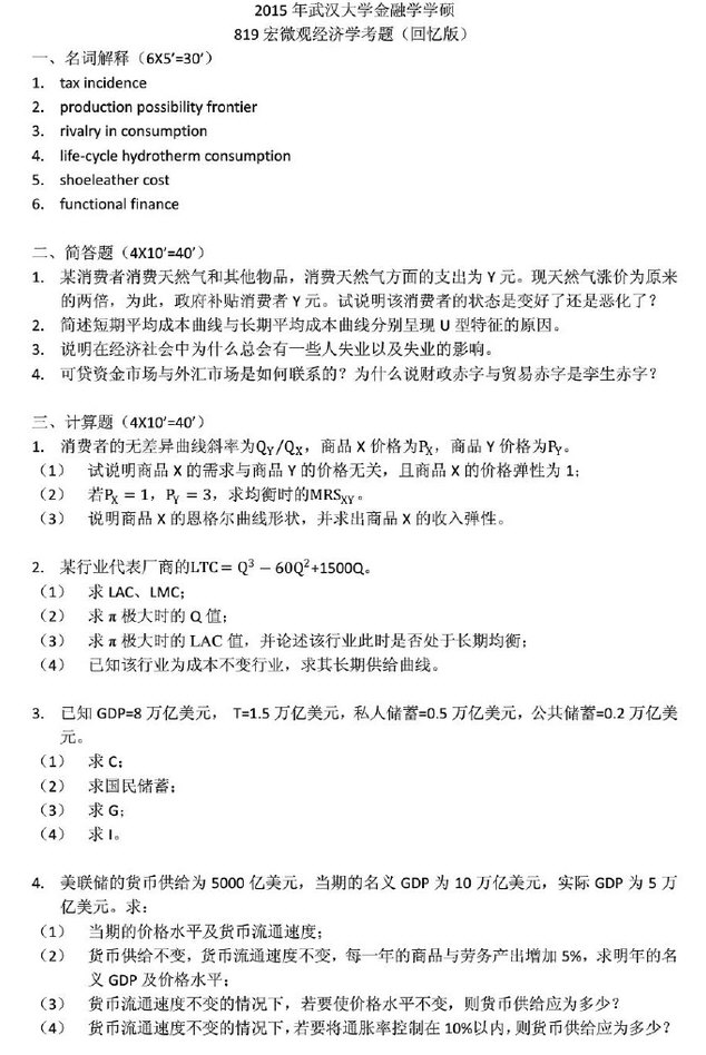 当前位置:考研云分享 专业课真题 2015年武汉大学819宏微观经济学考研真题.pdf 附件 文件名: 2015年武汉大学819宏微观经济考研真题.pdf 文件类型: pdf 前往下载 附件购买 售价:98 积分 开通会员或更高级的会员可免费下载该文件 您还未登录,请登录后查看资料 登录 武汉大学宏微观经济学 武汉大学 宏微观经济学 免责声明:本站所有的内容均来源于互联网采集或网友投稿提供,不能保证内容的真实性、完整性,仅供个人研究、交流学习使用,不涉及任何商业盈利目的。如果资料有误与官方发布不一致,请与官方最新发布为准,请联系本站管理员予以更改,如果涉及版权等问题,请联系本站管理员予以删除。 维权指引 | 权限说明 | 下载说明 | 内容投诉考研云分享 » 2015年武汉大学819宏微观经济学考研真题.pdf