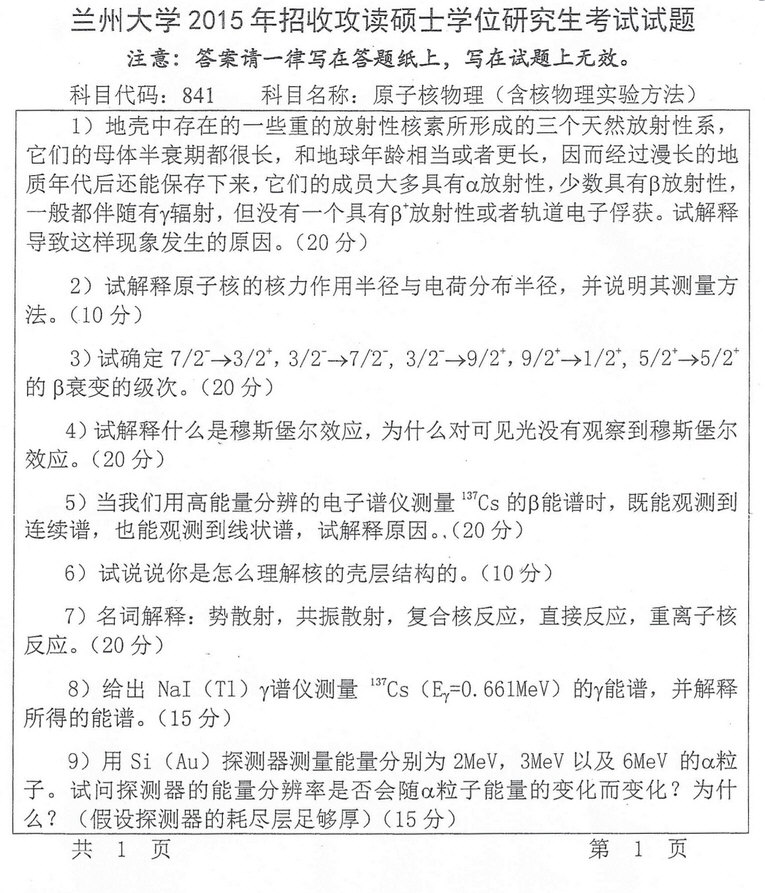 当前位置:考研云分享 专业课真题 2015-2017年兰州大学原子核物理考研真题.pdf 附件 文件名: 015-2017年兰州大学原子核物理考研真题.pdf 文件类型: pdf 前往下载 附件购买 售价:98 积分 开通会员或更高级的会员可免费下载该文件 您还未登录,请登录后查看资料 登录 兰州大学原子核物理 兰州大学 原子核物理 免责声明:本站所有的内容均来源于互联网采集或网友投稿提供,不能保证内容的真实性、完整性,仅供个人研究、交流学习使用,不涉及任何商业盈利目的。如果资料有误与官方发布不一致,请与官方最新发布为准,请联系本站管理员予以更改,如果涉及版权等问题,请联系本站管理员予以删除。 维权指引 | 权限说明 | 下载说明 | 内容投诉考研云分享 » 2015-2017年兰州大学原子核物理考研真题.pdf