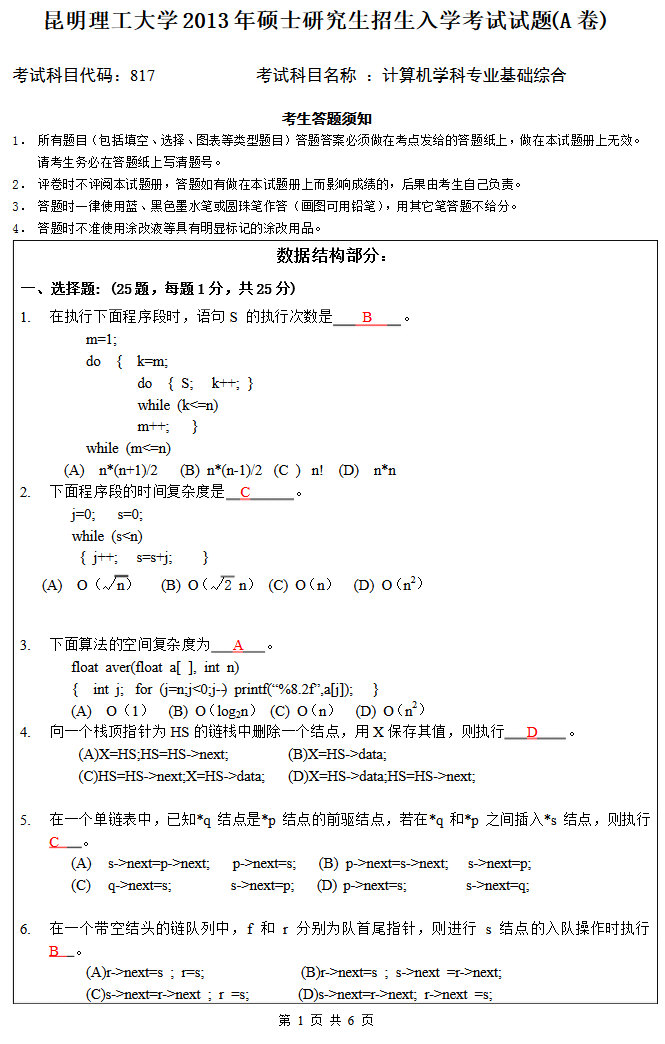 考研云分享 专业课真题 2013年昆明理工大学818计算机学科专业基础综合考研真题及答案.pdf