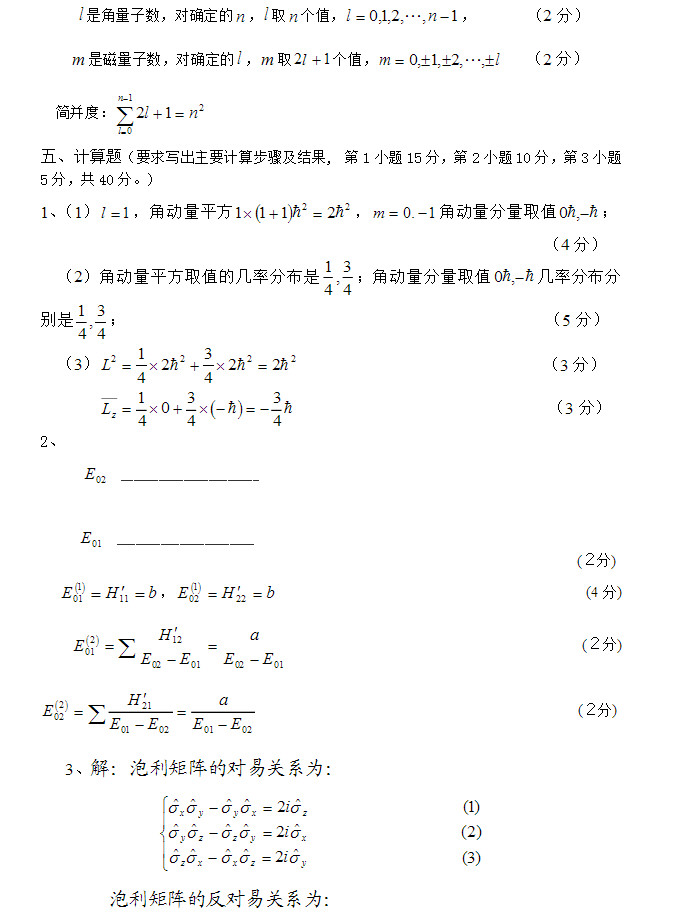 考研云分享 专业课笔记 2011-2012年湖北文理学院下学期物理学系物理专业 《量子力学》期末考试试卷B