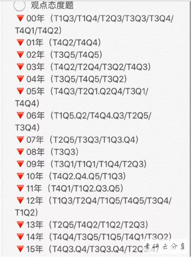 唐迟老师也在微博上分享了真题阅读题型的分类整理,对于英语真题已经做完好几遍不想再继续按照套卷刷题的同学,你们可以看一下自己经常出错的是哪种题型,然后按照下面图片中的整理把每一年的这种题型再做一遍,再分析一遍,其实就是数学中的“按专题做题”