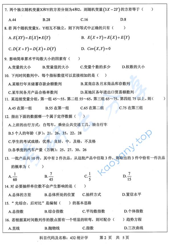 当前位置:考研云分享 专业课真题 2012年江苏大学432统计学考研真题 附件 文件名: 2012年江苏大学432统计学考研真题.docx 大小: 405.36KB 文件类型: .docx 前往下载 附件购买 售价:98 积分 开通会员或更高级的会员可免费下载该文件 您还未登录,请登录后查看资料 登录 江苏大学统计学 江苏大学 统计学 免责声明:本站所有的内容均来源于互联网采集或网友投稿提供,不能保证内容的真实性、完整性,仅供个人研究、交流学习使用,不涉及任何商业盈利目的。如果资料有误与官方发布不一致,请与官方最新发布为准,请联系本站管理员予以更改,如果涉及版权等问题,请联系本站管理员予以删除。 维权指引 | 权限说明 | 下载说明 | 内容投诉考研云分享 » 2012年江苏大学432统计学考研真题