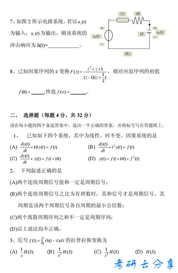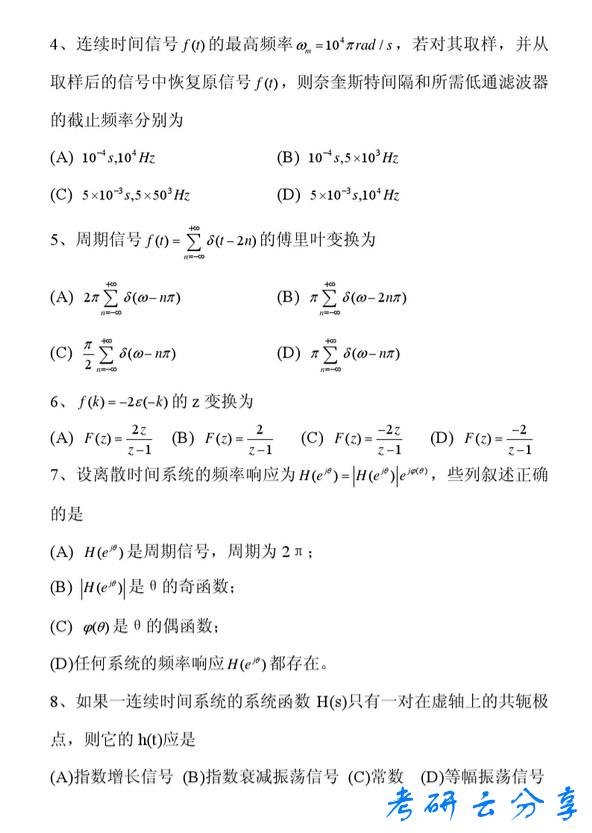 当前位置:考研云分享 专业课真题 2012年西安邮电大学824信号与系统考研真题 附件 文件名: 2012年西安邮电大学824信号与系统考研真题.pdf 文件类型: pdf 前往下载 附件购买 售价:98 积分 开通会员或更高级的会员可免费下载该文件 您还未登录,请登录后查看资料 登录 西安邮电大学信号与系统 西安邮电大学 信号与系统 免责声明:本站所有的内容均来源于互联网采集或网友投稿提供,不能保证内容的真实性、完整性,仅供个人研究、交流学习使用,不涉及任何商业盈利目的。如果资料有误与官方发布不一致,请与官方最新发布为准,请联系本站管理员予以更改,如果涉及版权等问题,请联系本站管理员予以删除。 维权指引 | 权限说明 | 下载说明 | 内容投诉考研云分享 » 2012年西安邮电大学824信号与系统考研真题