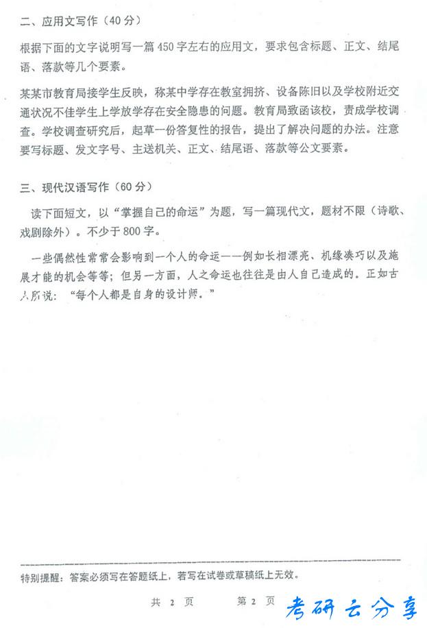 当前位置:考研云分享 专业课真题 2010年中国海洋大学汉语写作与百科知识考研真题 附件 文件名: 2010年中国海洋大学汉语写作与百科知识考研真题.pdf 文件类型: pdf 前往下载 附件购买 售价:98 积分 开通会员或更高级的会员可免费下载该文件 您还未登录,请登录后查看资料 登录 中国海洋大学汉语写作与百科知识 中国海洋大学 汉语写作与百科知识 中国海洋大学汉语写作与百科知识考研真题 免责声明:本站所有的内容均来源于互联网采集或网友投稿提供,不能保证内容的真实性、完整性,仅供个人研究、交流学习使用,不涉及任何商业盈利目的。如果资料有误与官方发布不一致,请与官方最新发布为准,请联系本站管理员予以更改,如果涉及版权等问题,请联系本站管理员予以删除。 维权指引 | 权限说明 | 下载说明 | 内容投诉考研云分享 » 2010年中国海洋大学汉语写作与百科知识考研真题