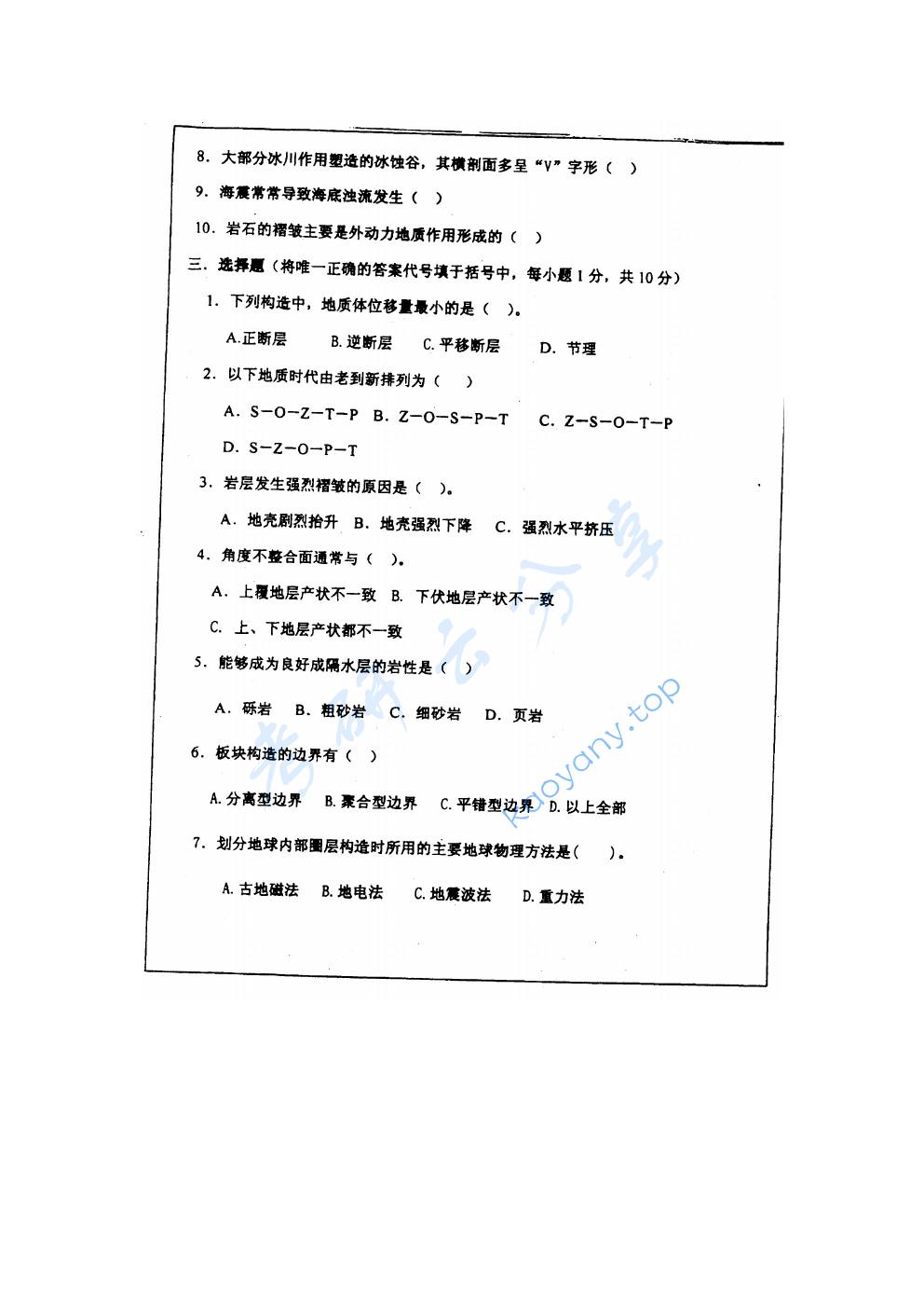 当前位置:考研云分享 专业课真题 2005年成都理工大学普通地质学考研真题 附件 文件名: 2005年成都理工大学普通地质学考研真题.pdf 文件类型: pdf 前往下载 附件购买 售价:98 积分 开通会员或更高级的会员可免费下载该文件 您还未登录,请登录后查看资料 登录 成都理工大学普通地质学 成都理工大学 普通地质学 免责声明:本站所有的内容均来源于互联网采集或网友投稿提供,不能保证内容的真实性、完整性,仅供个人研究、交流学习使用,不涉及任何商业盈利目的。如果资料有误与官方发布不一致,请与官方最新发布为准,请联系本站管理员予以更改,如果涉及版权等问题,请联系本站管理员予以删除。 维权指引 | 权限说明 | 下载说明 | 内容投诉考研云分享 » 2005年成都理工大学普通地质学考研真题