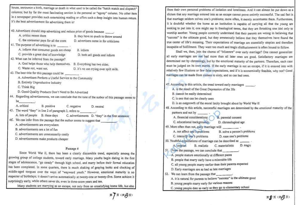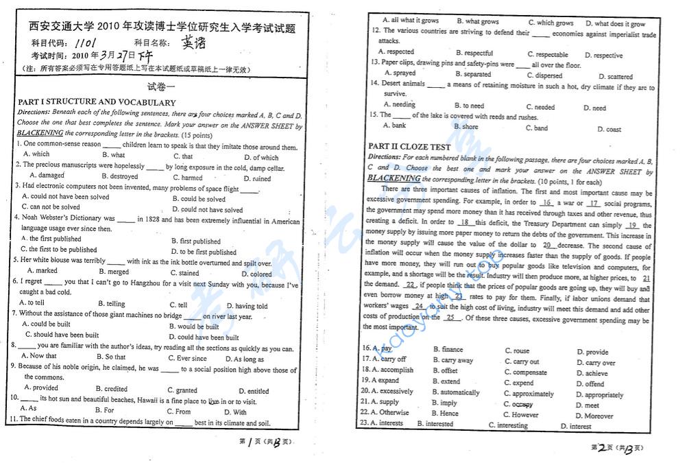 当前位置:考研云分享 专业课真题 2009-2010年西安交通大学英语考博真题 附件 文件名: 2009-2010年西安交通大学英语考博真题.pdf 文件类型: pdf 前往下载 附件购买 售价:98 积分 开通会员或更高级的会员可免费下载该文件 您还未登录,请登录后查看资料 登录 西安交通大学 免责声明:本站所有的内容均来源于互联网采集或网友投稿提供,不能保证内容的真实性、完整性,仅供个人研究、交流学习使用,不涉及任何商业盈利目的。如果资料有误与官方发布不一致,请与官方最新发布为准,请联系本站管理员予以更改,如果涉及版权等问题,请联系本站管理员予以删除。 维权指引 | 权限说明 | 下载说明 | 内容投诉考研云分享 » 2009-2010年西安交通大学英语考博真题