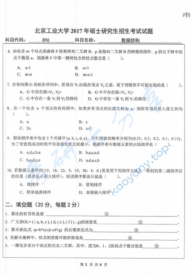当前位置:考研云分享 专业课真题 2017年北京工业大学896数据结构考研真题 附件 文件名: 2017年北京工业大学896数据结构考研真题.pdf 文件类型: pdf 前往下载 附件购买 售价:98 积分 开通会员或更高级的会员可免费下载该文件 您还未登录,请登录后查看资料 登录 北京工业大学数据结构 北京工业大学 数据结构 免责声明:本站所有的内容均来源于互联网采集或网友投稿提供,不能保证内容的真实性、完整性,仅供个人研究、交流学习使用,不涉及任何商业盈利目的。如果资料有误与官方发布不一致,请与官方最新发布为准,请联系本站管理员予以更改,如果涉及版权等问题,请联系本站管理员予以删除。 维权指引 | 权限说明 | 下载说明 | 内容投诉考研云分享 » 2017年北京工业大学896数据结构考研真题