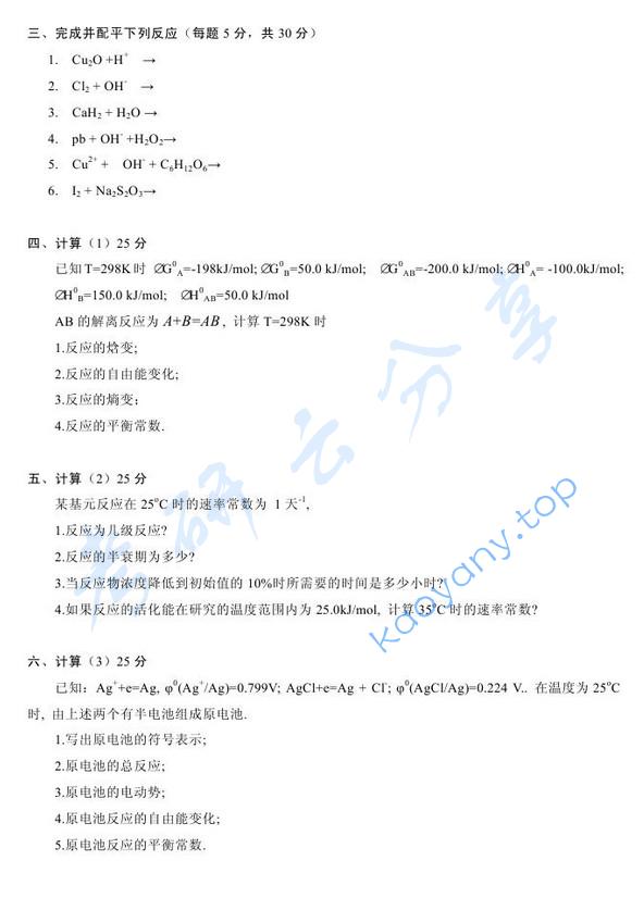 当前位置:考研云分享 专业课真题 2013年沈阳师范大学860无机化学考研真题 附件 文件名: 2013年沈阳师范大学860无机化学考研真题.pdf 文件类型: pdf 前往下载 附件购买 售价:98 积分 开通会员或更高级的会员可免费下载该文件 您还未登录,请登录后查看资料 登录 沈阳师范大学无机化学 沈阳师范大学 无机化学 免责声明:本站所有的内容均来源于互联网采集或网友投稿提供,不能保证内容的真实性、完整性,仅供个人研究、交流学习使用,不涉及任何商业盈利目的。如果资料有误与官方发布不一致,请与官方最新发布为准,请联系本站管理员予以更改,如果涉及版权等问题,请联系本站管理员予以删除。 维权指引 | 权限说明 | 下载说明 | 内容投诉考研云分享 » 2013年沈阳师范大学860无机化学考研真题