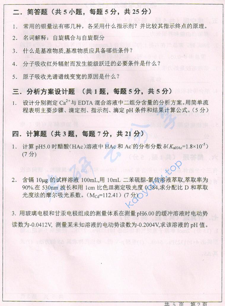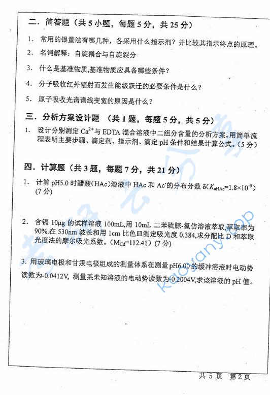 当前位置:考研云分享 专业课真题 2012年武汉大学880分析化学和物理化学考研真题 积分抵扣 售价:98 积分 开通会员或更高级的会员可免费查看该内容 您还未登录,请登录后查看资料 登录 武汉大学分析化学和物理化学 武汉大学 分析化学和物理化学 免责声明:本站所有的内容均来源于互联网采集或网友投稿提供,不能保证内容的真实性、完整性,仅供个人研究、交流学习使用,不涉及任何商业盈利目的。如果资料有误与官方发布不一致,请与官方最新发布为准,请联系本站管理员予以更改,如果涉及版权等问题,请联系本站管理员予以删除。 维权指引 | 权限说明 | 下载说明 | 内容投诉考研云分享 » 2012年武汉大学880分析化学和物理化学考研真题