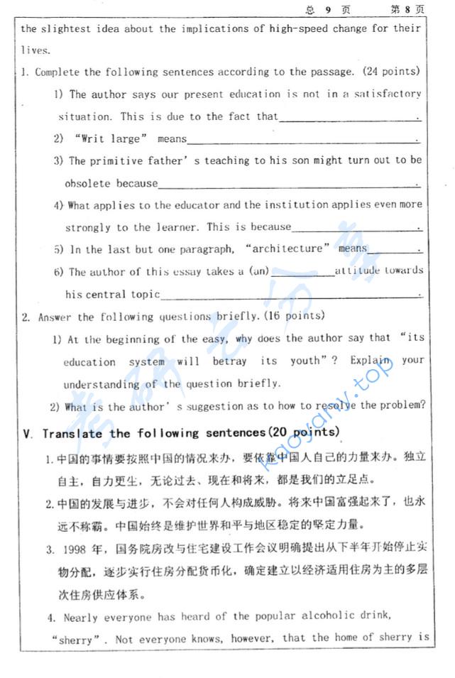 当前位置:考研云分享 专业课真题 2008年合肥工业大学基础英语考研真题.pdf 附件 文件名: 2008年合肥工业大学基础英语考研真题.pdf 文件类型: pdf 前往下载 附件购买 售价:98 积分 开通会员或更高级的会员可免费下载该文件 您还未登录,请登录后查看资料 登录 合肥工业大学基础英语 合肥工业大学 基础英语 免责声明:本站所有的内容均来源于互联网采集或网友投稿提供,不能保证内容的真实性、完整性,仅供个人研究、交流学习使用,不涉及任何商业盈利目的。如果资料有误与官方发布不一致,请与官方最新发布为准,请联系本站管理员予以更改,如果涉及版权等问题,请联系本站管理员予以删除。 维权指引 | 权限说明 | 下载说明 | 内容投诉考研云分享 » 2008年合肥工业大学基础英语考研真题.pdf