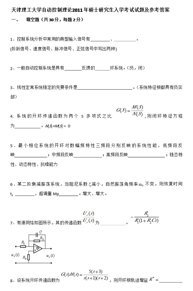当前位置:考研云分享 专业课真题 2011年天津理工大学自动控制理论考研真题及参考答案 附件 文件名: 2011年天津理工大学自动控制理论考研真题及参考答案 文件类型: pdf 前往下载 附件购买 售价:98 积分 开通会员或更高级的会员可免费下载该文件 您还未登录,请登录后查看资料 登录 天津理工大学自动控制理论 天津理工大学 自动控制理论 免责声明:本站所有的内容均来源于互联网采集或网友投稿提供,不能保证内容的真实性、完整性,仅供个人研究、交流学习使用,不涉及任何商业盈利目的。如果资料有误与官方发布不一致,请与官方最新发布为准,请联系本站管理员予以更改,如果涉及版权等问题,请联系本站管理员予以删除。 维权指引 | 权限说明 | 下载说明 | 内容投诉考研云分享 » 2011年天津理工大学自动控制理论考研真题及参考答案