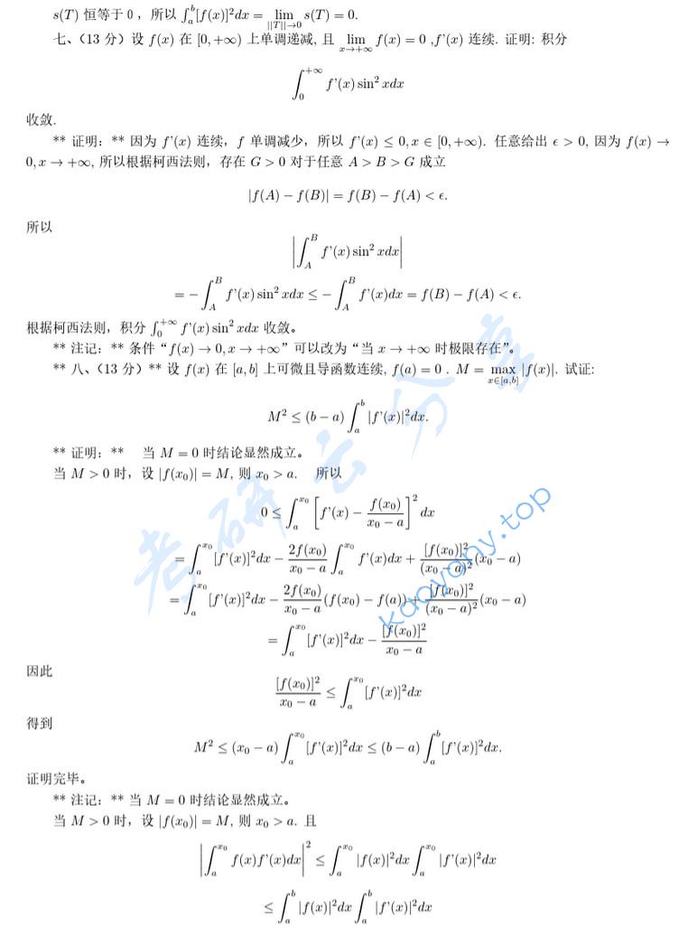 当前位置:考研云分享 专业课真题 2013年浙江大学数学分析考研真题及部分答案 附件 文件名: 2013年浙江大学数学分析考研真题及部分答案.docx 大小: 734.93KB 文件类型: .docx 前往下载 附件购买 售价:98 积分 开通会员或更高级的会员可免费下载该文件 您还未登录,请登录后查看资料 登录 浙江大学数学分析 浙江大学 数学分析 免责声明:本站所有的内容均来源于互联网采集或网友投稿提供,不能保证内容的真实性、完整性,仅供个人研究、交流学习使用,不涉及任何商业盈利目的。如果资料有误与官方发布不一致,请与官方最新发布为准,请联系本站管理员予以更改,如果涉及版权等问题,请联系本站管理员予以删除。 维权指引 | 权限说明 | 下载说明 | 内容投诉考研云分享 » 2013年浙江大学数学分析考研真题及部分答案