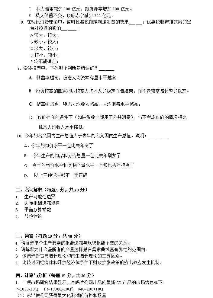 内容投诉考研云分享 » 2013年北京外国语大学724经济学(含微观经济、宏观经济学)考研真题