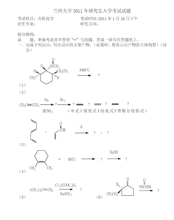 内容投诉考研云分享 » 2011年兰州大学614无机化学和有机化学考研真题