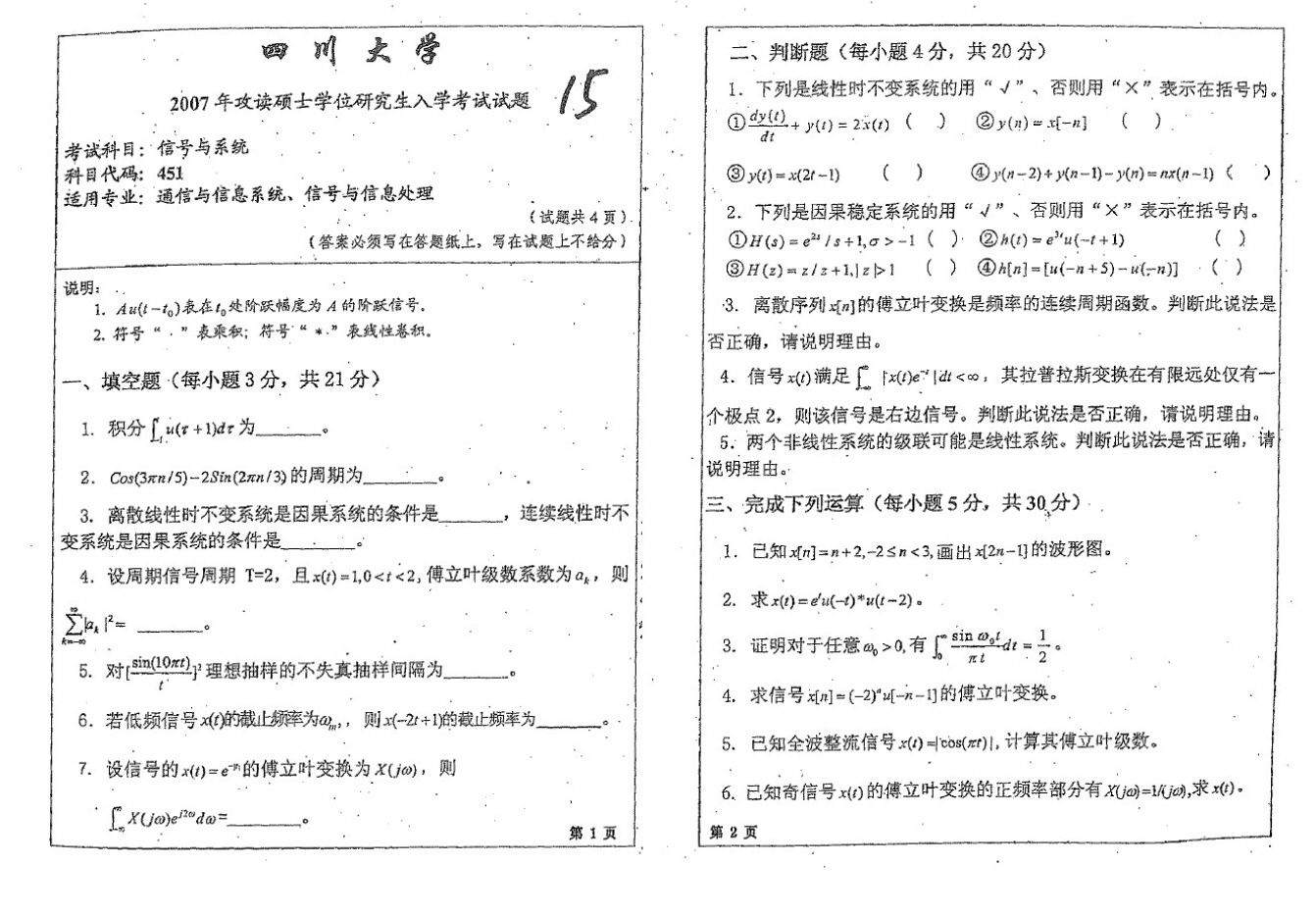 当前位置:考研云分享 专业课真题 2007年四川大学451信号与系统考研真题 积分抵扣 隐藏内容 内容投诉 四川大学信号与系统 四川大学 信号与系统 免责声明:本站所有的内容均来源于互联网采集或网友投稿提供,不能保证内容的真实性、完整性,仅供个人研究、交流学习使用,不涉及任何商业盈利目的。如果资料有误与官方发布不一致,请与官方最新发布为准,请联系本站管理员予以更改,如果涉及版权等问题,请联系本站管理员予以删除。 维权指引 | 权限说明 | 下载说明 | 内容投诉考研云分享 » 2007年四川大学451信号与系统考研真题