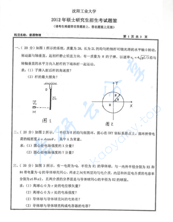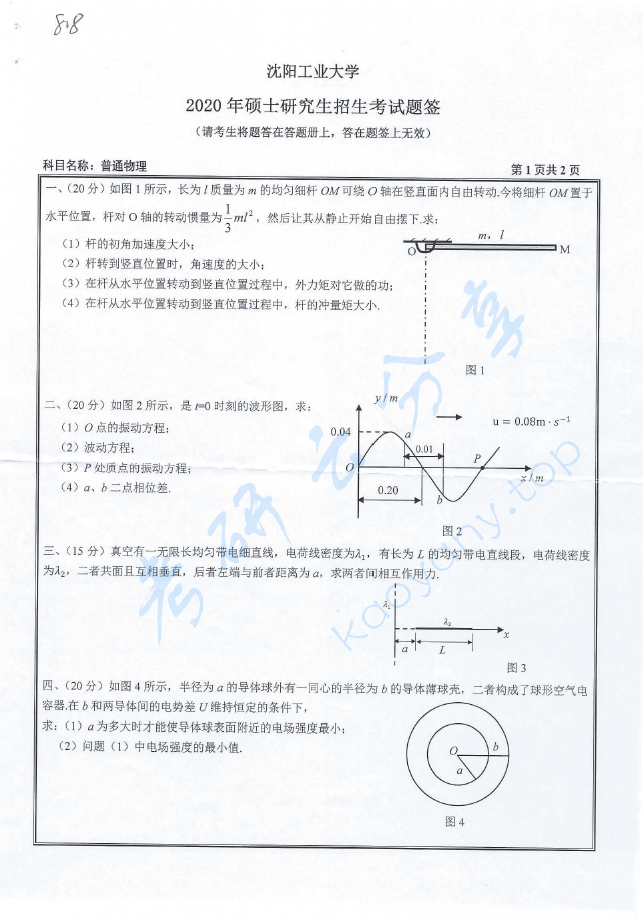 2019年沈阳工业大学818普通物理考研真题.pdf