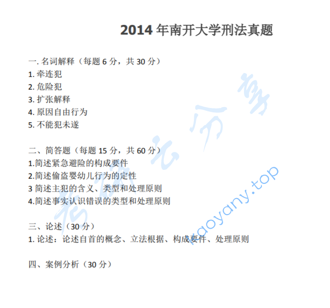 会员免费 2012年南开大学870刑法(刑法总论、刑法分论)考研真题 南开大学刑法 南开大学 刑法 一、名词解释题(每小题6分,共30分)1.酌定量刑情节2.结果加重犯抱歉,本题试题不全。[NeadPay]